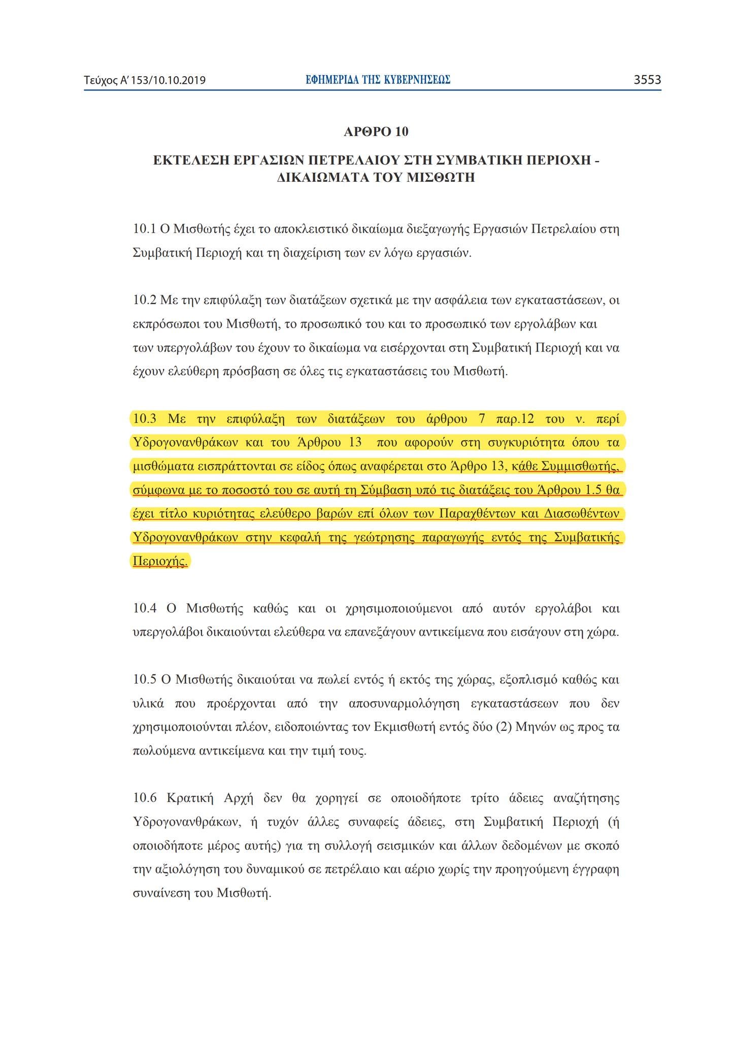 Δεν είναι σαφές αν αυτό σημαίνει χρήματα ή αέριο. Πάντως, ο CEO της ΕΔΕΥΕΠ (Ελληνική Διαχειριστική Εταιρεία Υδρογονανθράκων και Ενεργειακών Πόρων) σε συνέντευξή του δεν αναφέρει τίποτα για κάλυψη εγχώριων αναγκών. Το μόνο που λέει είναι ότι «το 40% των καθαρών κερδών από την εκμετάλλευση των υδρογονανθράκων επιστρέφει στο ελληνικό κράτος, μέσω φόρων, ρητρών παραγωγής και μπόνους». Αν φυσικά το κοίτασμα αποδειχθεί αξιοποιήσιμο και αν, και όταν, οι εταιρείες παρουσιάσουν κέρδη, προσθέτω εγώ.