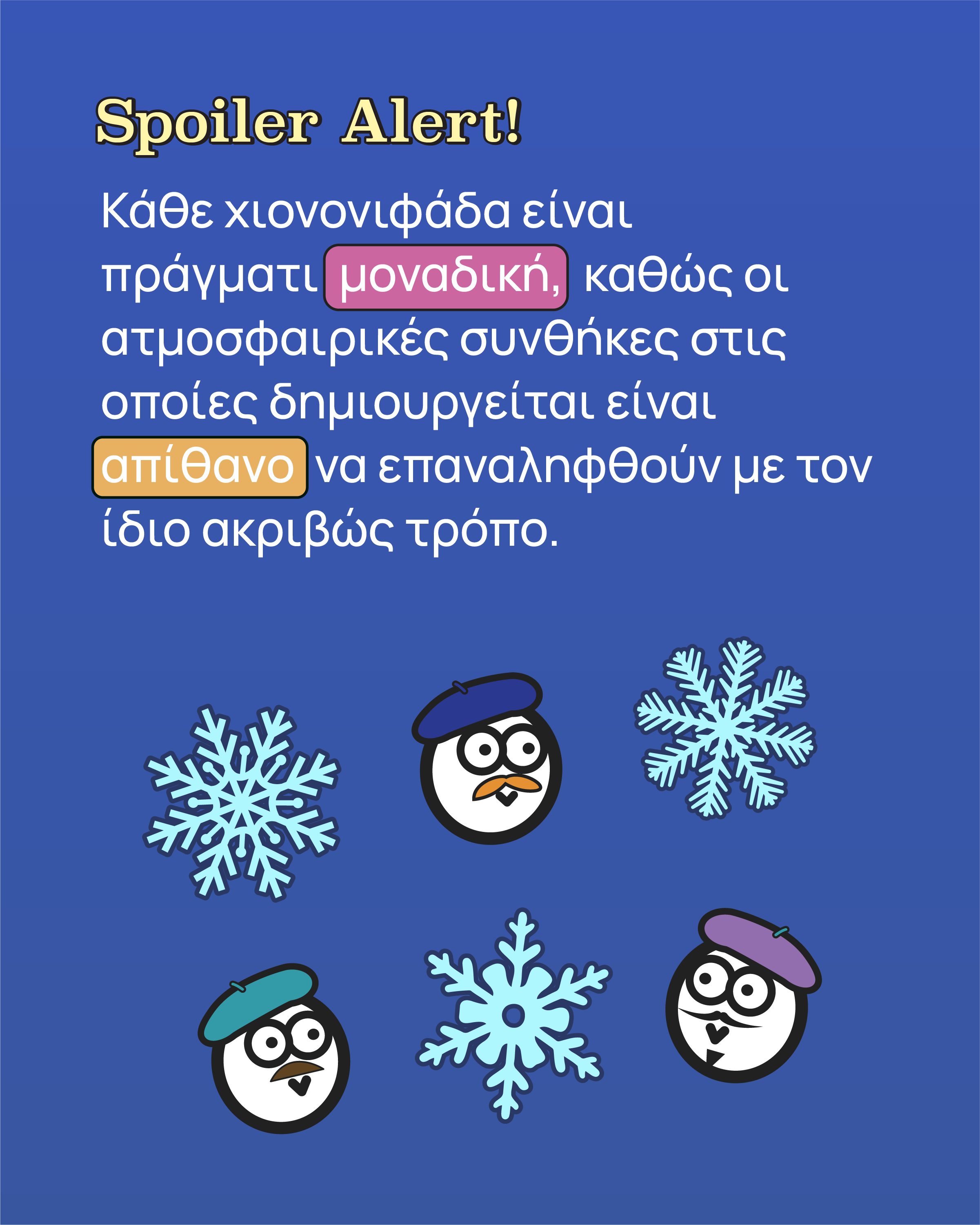 Το ρωτάω γιατί υπάρχει τόσο έντονη διαμάχη για το αν υπάρχει αλλού νοημοσύνη και συνήθως ακούω το αντίθετο επιχείρημα: ότι σε τόσο μεγάλο αριθμό πλανητών αποκλείεται να μην υπάρχει αλλού νοήμων ζωή. Και μου βγάζει πολύ νόημα αυτή η λογική. Αλλά εξίσου νόημα μου βγάζει και η μοναδικότητα λόγω της ίδιας εξήγησης με αυτήν για τις χιονονιφάδες. Γιατί στο σύμπαν αρνούμαστε να δεχτούμε τη μοναδικότητα της νοημοσύνης ενώ στις χιονονιφάδες το δεχόμαστε; Η φύση έχει δείξει ότι είναι ικανή να δημιουργεί μοναδικότητες ακόμα και σε αστρονομικά μεγάλα μεγέθη.